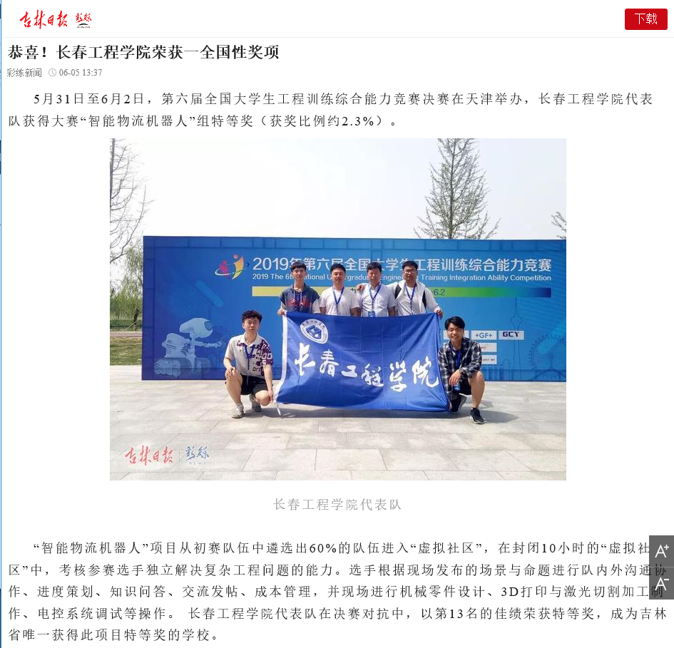 上一条:【新文化报·ZAKER吉林】喜讯!长工程代表队荣获第六届全国大学生工程训练综合能力竞赛特等奖