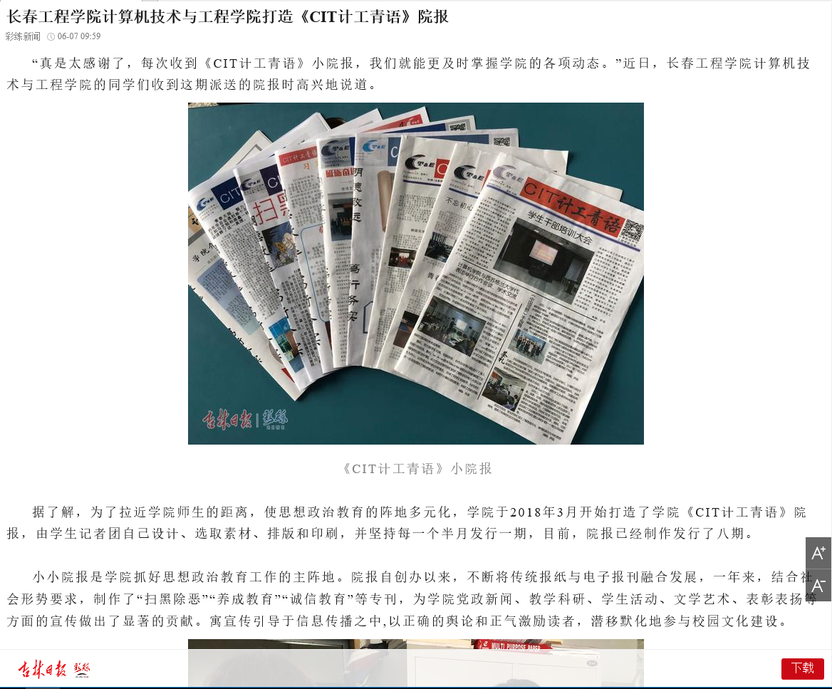 【吉林日报】环球网_环球(中国)计算机技术与工程学院打造《CIT计工青语》院报