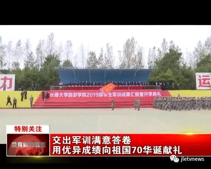 日前,长春大学旅游学院举行了2019级新生军训成果汇报暨开学典礼。活动现场,由2019级新生组成的军训受阅方队迈着整齐的步伐、喊着响亮的口号正步走过主席台接受检阅,同学们各个神清气爽,斗志昂扬。